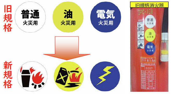 旧規格の消火器は、