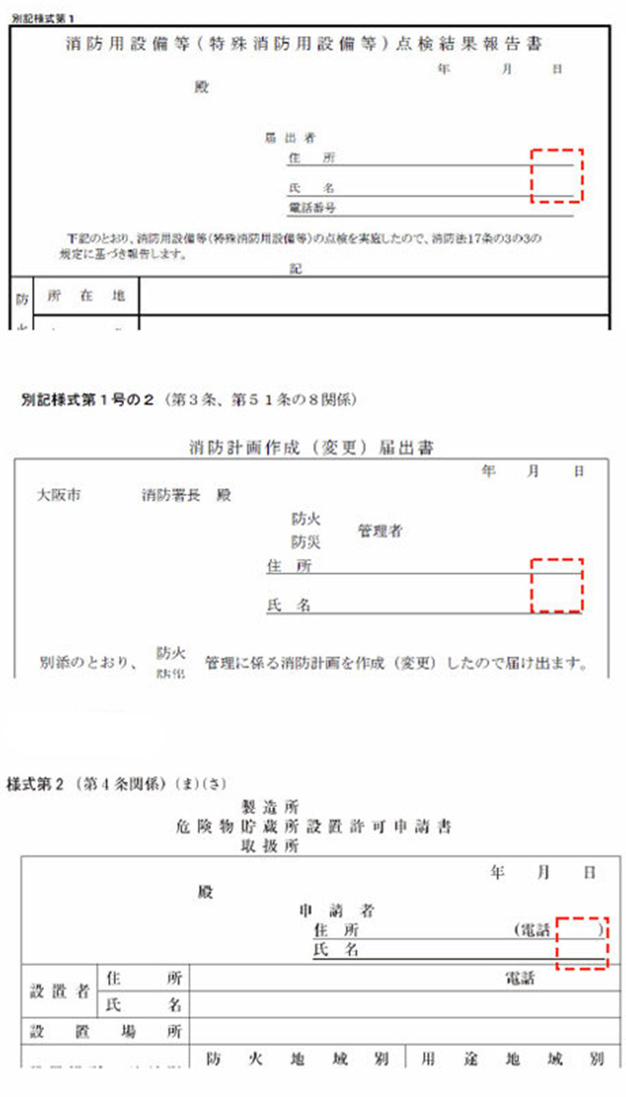 対 象:普段消防へ届出ている書類で、届出者の捺印が必要な全ての書類